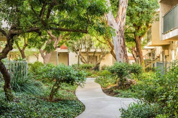 Village Pointe Apartments at 17171 West Roscoe Boulevard, Los Angeles, CA 91325. This Mediterranean-inspired complex offers a relaxed, resort-like environment within six acres of lush gardens. Standard 12-month lease term (short-term rates available upon inquiry). Pricing and availability subject to change—please call for current rates.