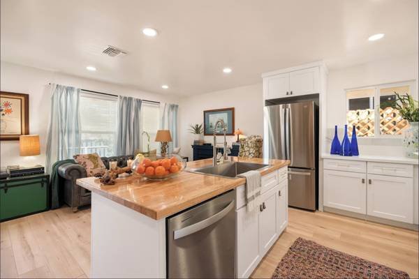 - Updated chef's kitchen with premium appliances (butcher block island, integrated sink/dishwasher).