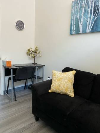 Overview: Bright, furnished or unfurnished office spaces within a renovated suite, ideal for remote or on-site professionals. Pricing starts from $210/month for part-time use to $700/month for a full-time dedicated office. The space is shared with therapists and legal professionals.