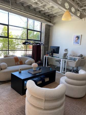 This 1,800 sq ft second-floor suite in Santa Monica is available for $5,600/month. It features an expansive open floor plan with three compact private offices, floor-to-ceiling windows, and includes all utilities, high-speed WiFi, and access to shared amenities. Month-to-month lease terms are available.