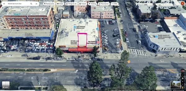 ---This approximately 1,100 sq. ft. corner unit is located at the junction of Vermont and Burns Avenues, near Santa Monica Boulevard. The property is in a densely populated area with over 100,000 residents within a one-mile radius. The shopping center offers generous front and rear parking.