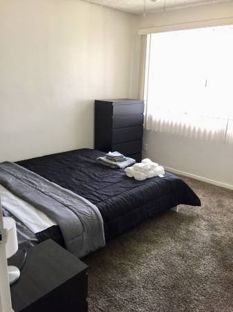 - Fully furnished bedroom (bed, mattress, nightstand, lamp, closet, dresser).