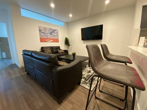 This is a furnished private room in a modern 4-bedroom apartment. The price starts at $1,450/month and includes all utilities, WiFi, and streaming services. You can choose between a private or shared bathroom.
