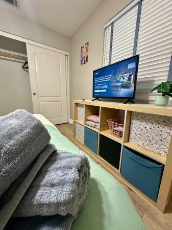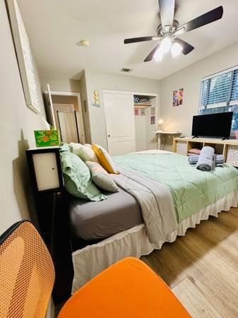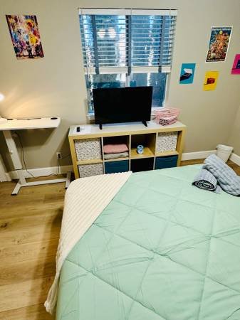 A fully furnished room is available in a quiet, secure executive home in a highly sought-after neighborhood. Ideal for students (CAL ARTS, CSUN, College of the Canyons) or working professionals. The home is shared with 2-3 respectful housemates and includes access to all common areas, a community pool, and jacuzzi. Flexible stay terms are available.
