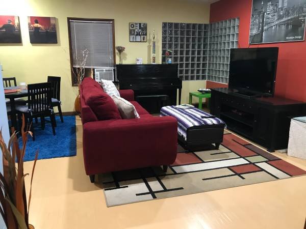 - Fully Furnished & Equipped: Includes queen bed, sofa, piano, 46" HDTV, dining set, and all kitchen essentials, linens, and towels.