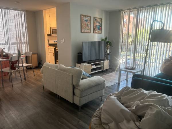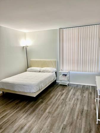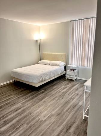 Overview: A four-month sublet for a private bedroom with a private bathroom in Koreatown, near South Manhattan and 3rd Street. The room is furnished with a queen bed, frame, desk, and a walk-in closet.
