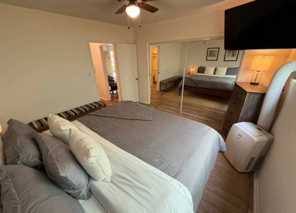 Cozy and fully furnished apartment, ready for immediate move-in. Located just **steps from the beach** in **Venice**. Rent includes all **utilities, WiFi, and a dedicated parking spot**. The bedroom features a **king-sized bed** and a large closet.