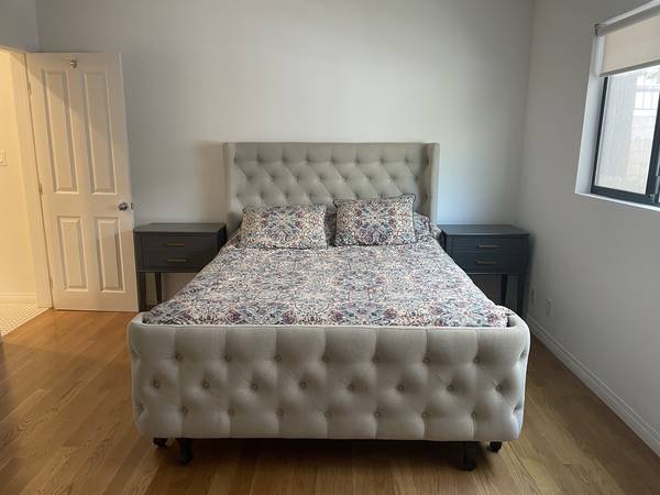 - Fully furnished (queen bed, nightstands, desk)