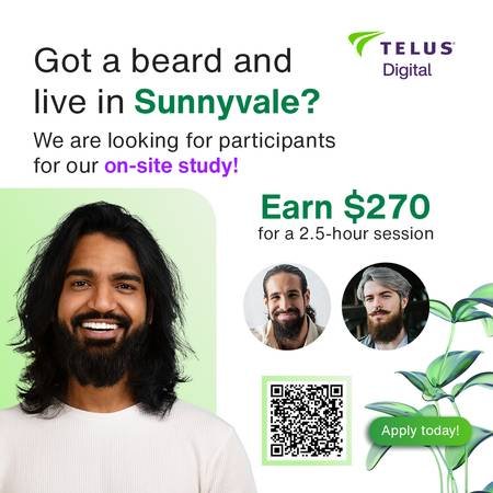 Earn $270 to $395 by participating in a paid research study for TELUS Digital. The session involves being photographed and recorded while performing basic movements and tasks. No prior experience is needed—all instructions are provided on-site. Payment is issued conveniently via Hyperwallet (PayPal, bank transfer, or Venmo).