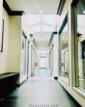 ---The beautifully renovated suite features custom solid wood cabinetry and premium equipment, including a Color Mixing Station, dedicated styling areas, and modern amenities. Located at Salon 90210 in Beverly Hills, it offers a prestigious address with flexible access. A promotion of one week free rent is currently offered.