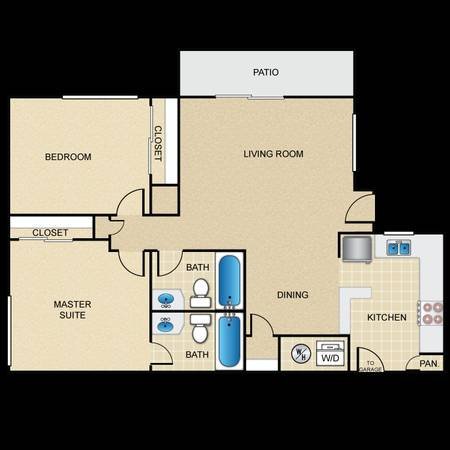 Spacious apartments available at The Terrace Apartment Homes, located at 21311 Alder Drive, Santa Clarita, CA 91321. Features expansive, open-concept layouts with a variety of bedroom options. Pricing and availability are subject to change.