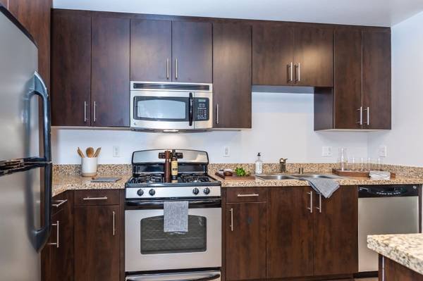 - Apartment Features: Granite countertops, wood-style flooring, designer fixtures, in-home washer/dryer, high-speed data ready, and private patio/balcony in select homes.