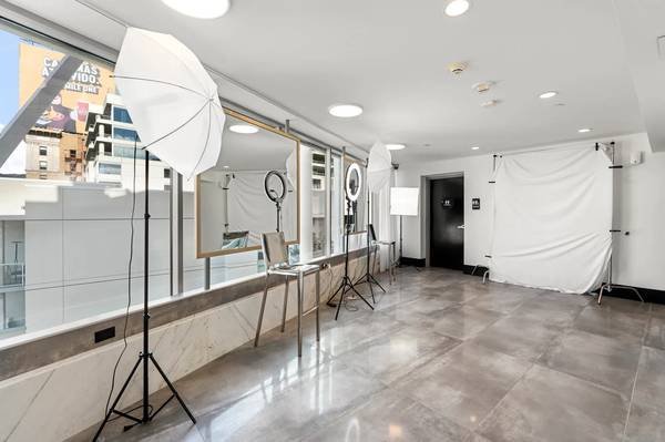 - Open-air amenity floor with fire lounges offering views of Hollywood