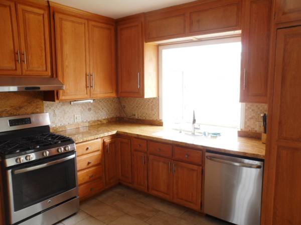 - Remodeled kitchen with a large center island.