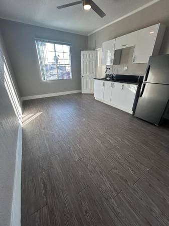 - Unit Features: Ceiling fans, new kitchen cabinets, large windows with abundant natural light, brand new appliances, open floor plan, and new hardwood flooring.