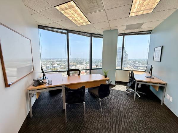 Interior office suites are now available in a class A building in Santa Monica. Pricing for a three-person office begins at $1,266/month based on a 24-month agreement. This turnkey solution includes all utilities, high-speed internet, and professional support services.