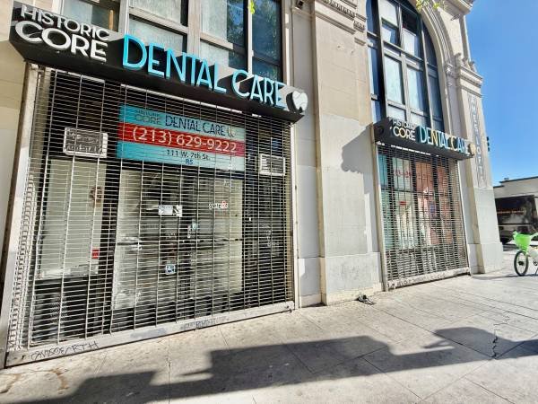 1,500 sq. ft. ground-floor commercial unit available in the Historic Core district of Downtown Los Angeles. Previously a dental office, this versatile space is ideal for a clinic, spa, or wellness center. Includes private bathroom, multiple separate rooms, and large shelving units.