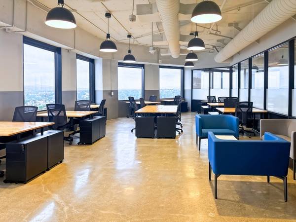 This contemporary, fully serviced office space offers a private office for up to 30 people at a promotional rate of $309 per person. The space is fully furnished and includes all utilities, cleaning, and flexible, month-to-month lease terms.