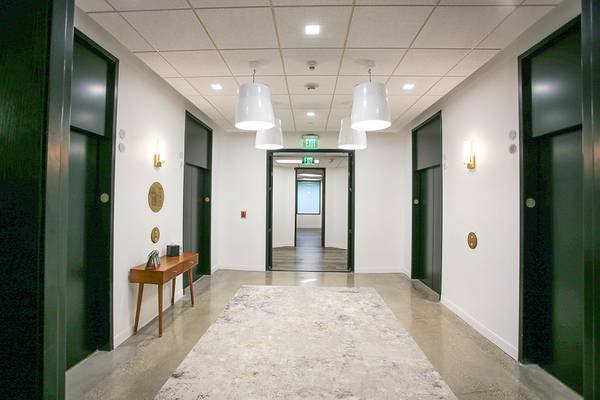 This is a full-service executive suite offering private offices at 21550 Oxnard St., Suite 300, Woodland Hills, CA 91367. The space includes professional staff support and modern common areas.