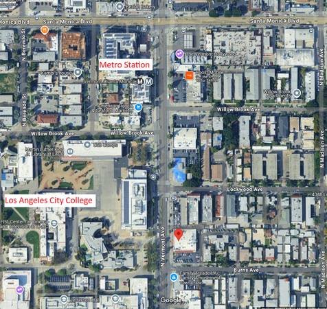 ---This approximately 1,100 sq. ft. corner unit is located at the junction of Vermont and Burns Avenues, near Santa Monica Boulevard. The property is in a densely populated area with over 100,000 residents within a one-mile radius. The shopping center offers generous front and rear parking.