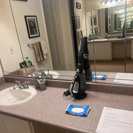 - Private bedroom with two full mirrored closets and a private bathroom.