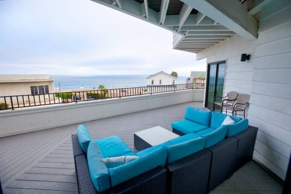 This expansive, 4,200 sq ft beachfront residence in Silicon Beach is available for a six-month lease starting December 1. The monthly rate is $16,500, plus utilities. This elegantly furnished, 4-bedroom, 4-bathroom home offers breathtaking ocean views from multiple levels and includes linens, towels, and a fully-equipped kitchen.