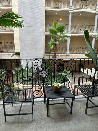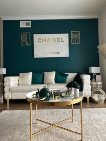 A fully furnished queen-sized bedroom is available for rent, with occupancy beginning on December 1st. The room features a king-sized bed and shares the living room and kitchen with one other resident in this two-bedroom, two-bathroom apartment. The unit includes an in-home washer and dryer, as well as a private balcony overlooking the courtyard.
