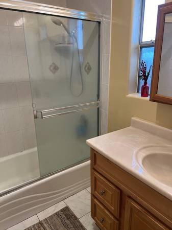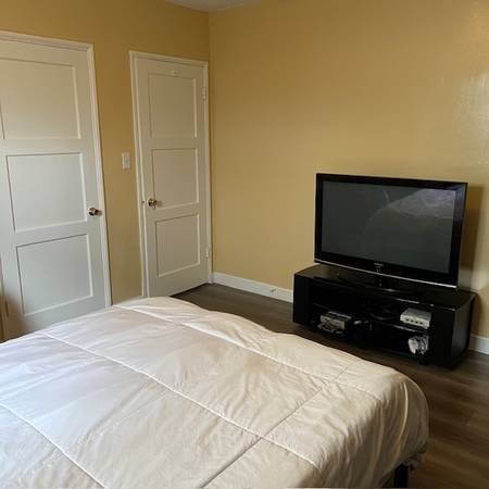 This unfurnished private bedroom with a private bathroom is available for a one-year lease at $1,390/month. Rent includes utilities (with reasonable use expected). The room features freshly painted walls, new wooden flooring, and a built-in closet.