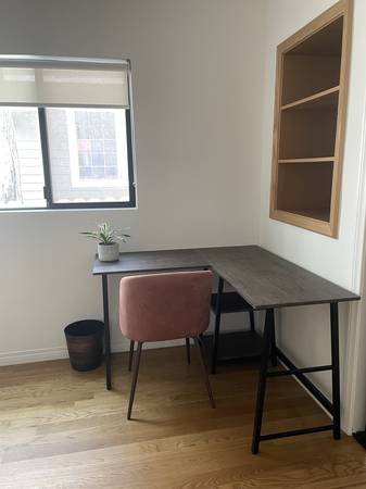 - Fully furnished (queen bed, nightstands, desk)