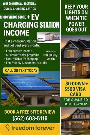 Join one of the fastest-growing sectors in the U.S. as an independent contractor. We offer a unique portfolio beyond residential solar, now including Commercial Electric Vehicle Charging Stations and AI-powered Smart Convenience Stores. This is a new, high-demand market with significant income potential for early entrants.
