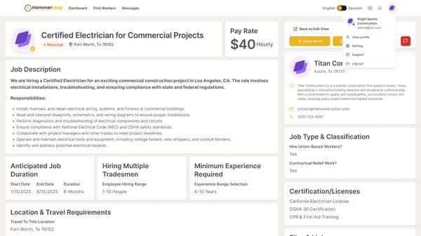 Workers can set up a complimentary profile, specifying their trade specialty and geographic location, which employers can then immediately search. When employers list job opportunities on the platform, they specify the trade to which the posting should be directed, and workers in the relevant area receive alerts for matching positions. Interested workers can review the job details and, if they wish to apply, click the 'loop me in' button to submit their profile directly to the employer. Subsequent communication can be handled entirely within the platform's messaging system.